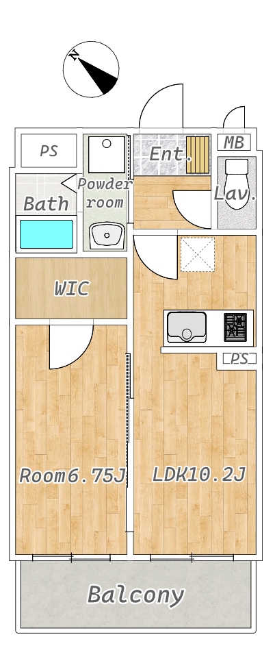 | 使用部分面積 | 42.5㎡ (12.86坪) | 間取り | 1LDK |