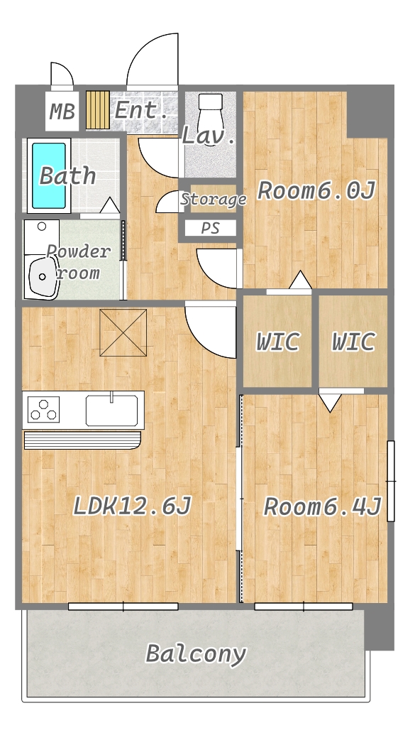 | 使用部分面積 | 60.12㎡ (18.19坪) | 間取り | 2LDK |