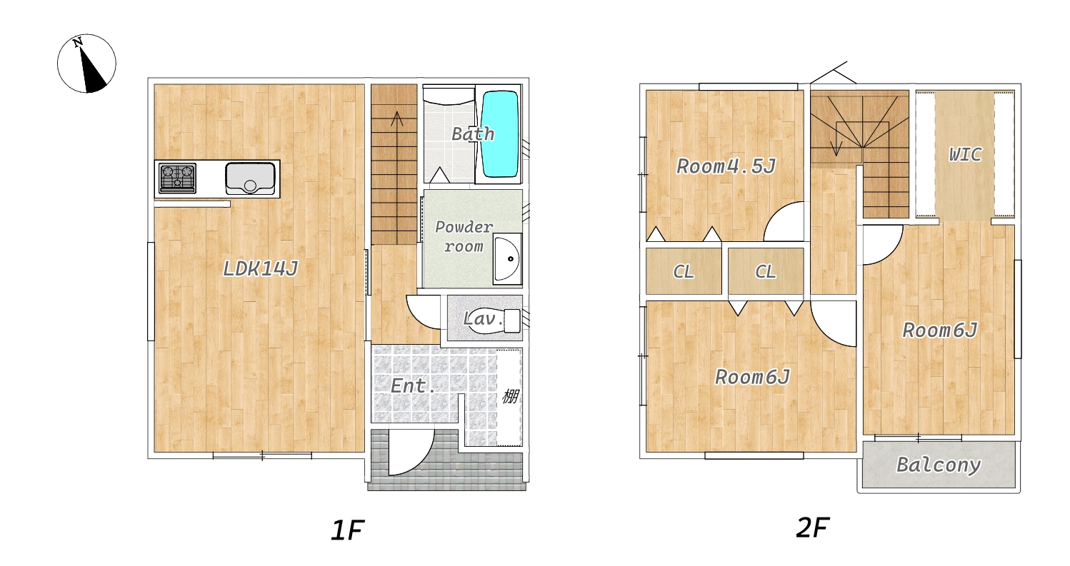 | 間取り詳細 | 1F:LDK14帖 2F:洋室6帖 6帖 4.5帖 WIC | 階建 / 階 | 2階建 / メゾネット1階~2階部分 |