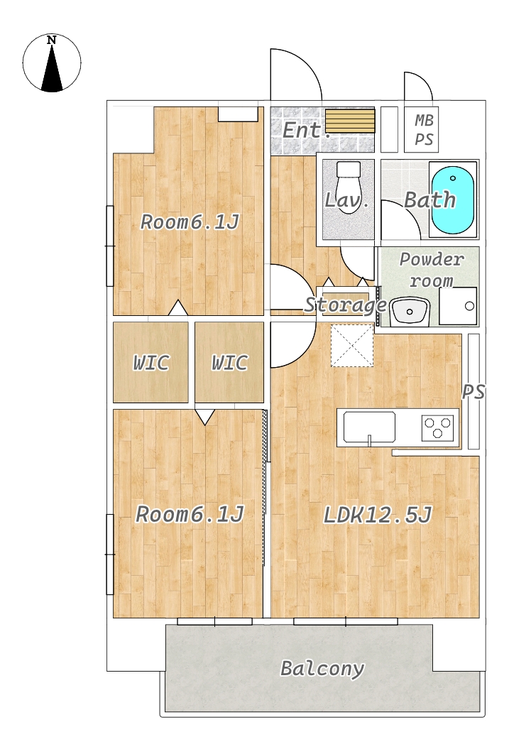 間取り詳細 | LDK12.5帖・洋室6.1帖WIC付・6.1帖WIC付 | 階建 / 階 | 9階建 / 9階 |