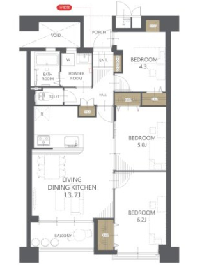 | 間取り詳細 | LDK13.7帖 洋室6.2帖 洋室5.0帖 洋室4.3帖 | 構造 | 鉄筋コンクリート造 |