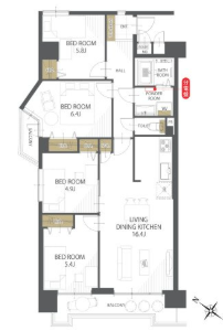 | 間取り詳細 | LDK16.4帖 洋室6.4帖 洋室5.8帖 洋室5.4帖 洋室4.9帖 | 構造 | 鉄骨鉄筋コンクリート造 |