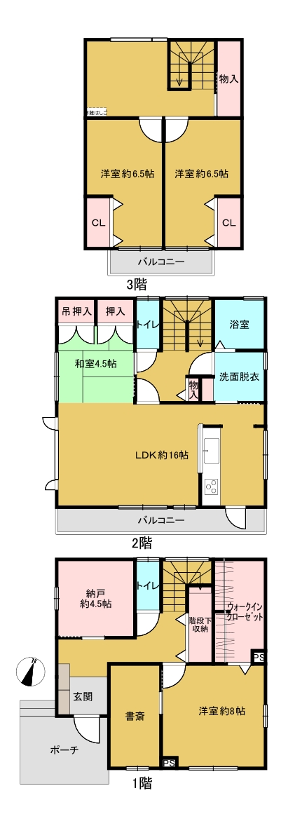 | 間取り詳細 | LDK20.5帖 洋室8帖、6.5帖、6.5帖 納戸4.5帖 | 構造 | 軽量鉄骨造 |