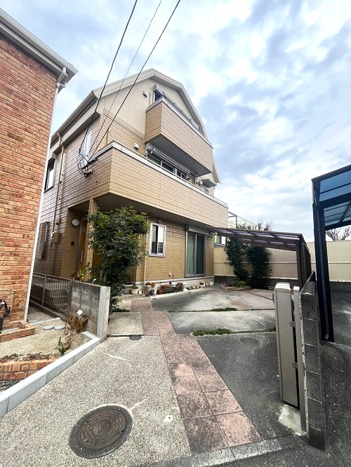 熊本市東区新外2丁目。ダイワハウス施工の3階建て軽量鉄骨造中古戸建。買い物便利な住環境に加え、バス停も近く通勤通学も快適。安心の品質と利便性を兼ね備えた一邸です。