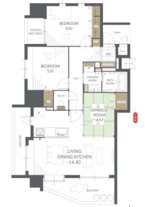 | 間取り詳細 | LDK14.8帖 和室4.5帖 洋室6.0帖 洋室5.0帖 | 構造 | 鉄筋コンクリート造 |
